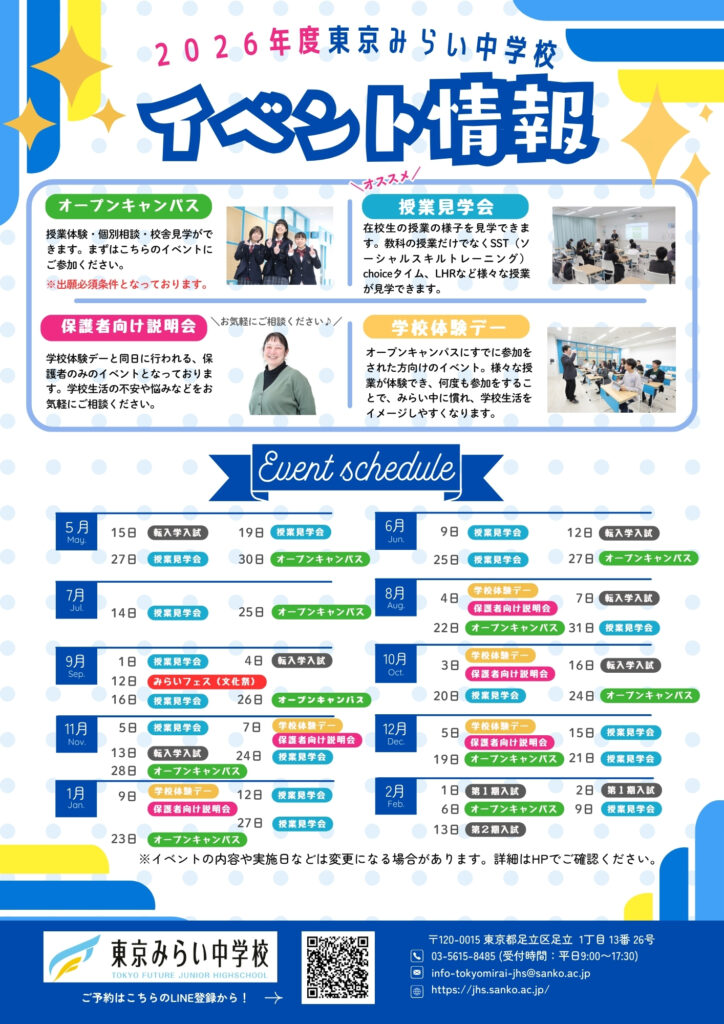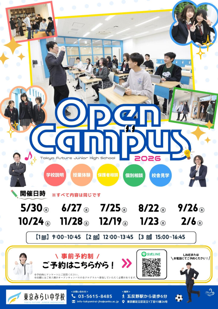 *授業体験…東京みらい中学校の授業を体験することができます。