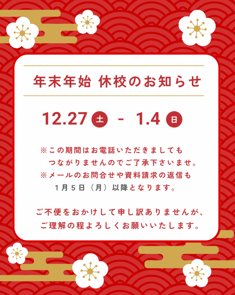 年末年始 休校についてのご案内
